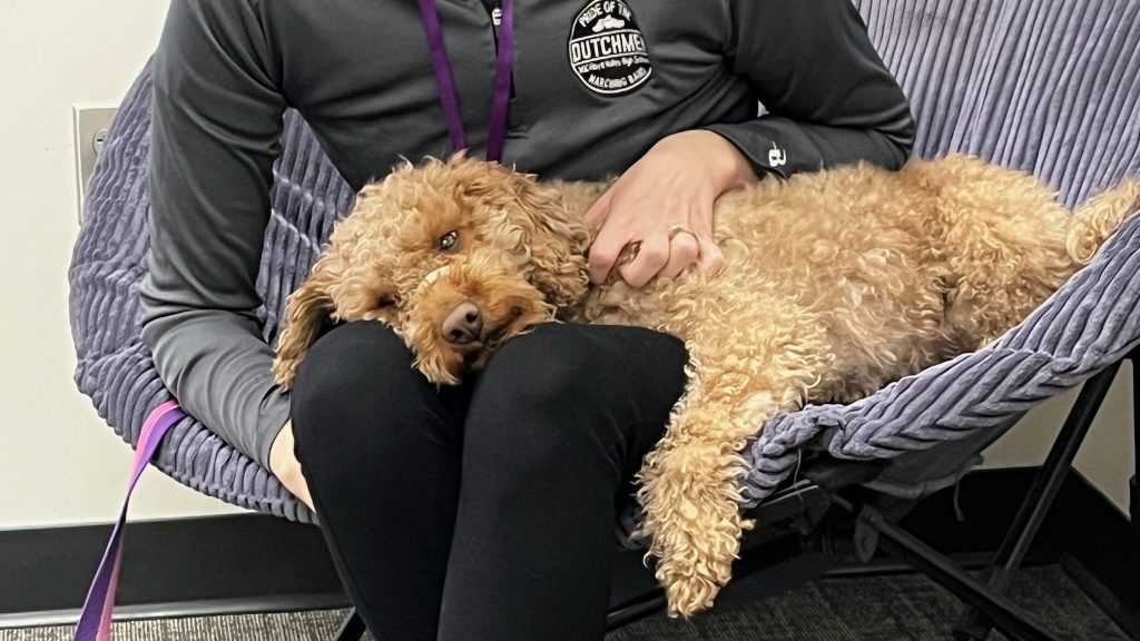 Research shows that therapy dogs in schools can lower stress, decrease anxiety, and improve overall student engagement. Jersey is a key part of our mission to care for our students at MOC-FV.